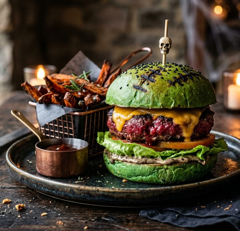 Ingrédients (pour 4 burgers) Pour le pain vert : Pour …