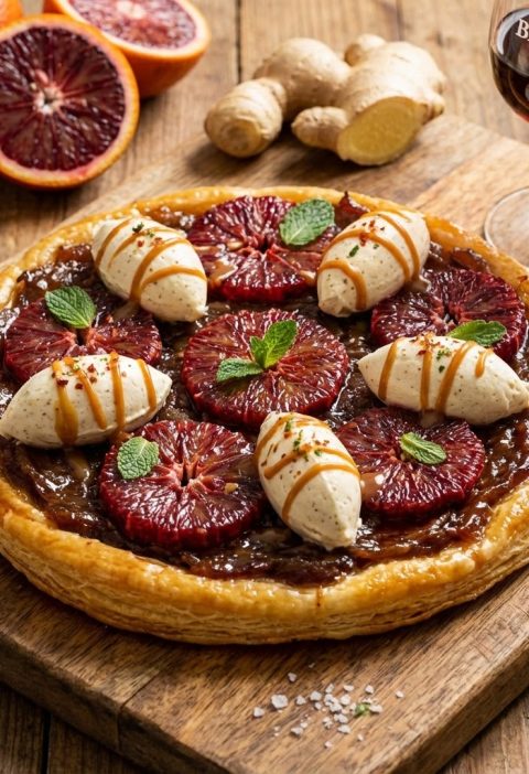 Le Carnivore Solaire – Tarte aux agrumes sanguins & bœuf confit au caramel