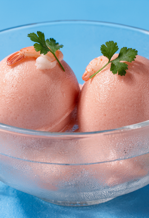 - Placez deux boules de glace au tiramisu dans un mixeur, ajoutez le mélange de mascarpone et pulsez jusqu’à obtenir une texture d’écume.